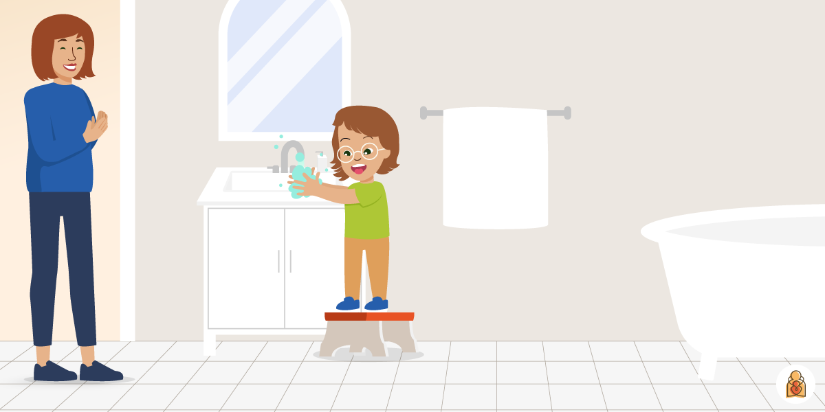 Celebrate positive behaviors at home, like when your child washes their hands before eating and after using the bathroom or touching shared objects. Remind them that