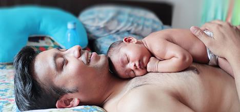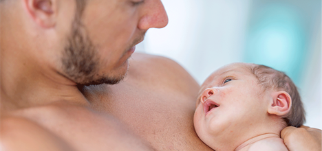 Compared to newborns in bassinets in the first two hours after birth, a baby placed on their father's chest cries less, falls asleep sooner and shows less agitation. Whatever the situation, at some point the mother will need care, giving dads and partners a chance to enjoy the closeness of their new baby while skin-to-skin.