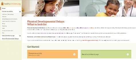 The American Academy of Pediatrics (AAP) created an online tool for parents called Does My Child Have Physical Developmental Delays? This interactive tool is a starting point for caregivers about physical developmental delays in babies and children age 2 months to 5 years.