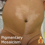 Mosaicism is a word that means two sets of DNA, or genes, are present in the same person. In pigmentary mosaicism, different genes might affect the color of the skin. These changes can be subtle or very large. Pigmentary mosaicism birthmarks have unique patterns including lines and swirls. With sun exposure, areas can become lighter or darker.