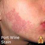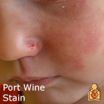 Port wine stains are fairly common, seen in about 3 in 1,000 children. They are similar to nevus simplex: flat, pink or red birthmarks made up of extra capillaries. They also are visible at birth. But these birthmarks are usually larger than nevus simplex and may affect more areas of the face and body. Unlike some other birthmarks, port wine stains do not go away. They grow as your child grows, but slowly. Over time, they may become darker and thicker.