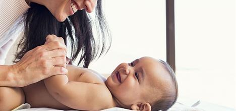 If your baby is cooperative, which most babies are at least until they learn how to roll (somewhere around four months of age), you can first lift their legs with one hand. Using your other hand, place an opened clean diaper under their still-diapered bottom Make sure you have the picture side of the new diaper in front, face down on the changing surface, and the side with the tabs underneath your baby.