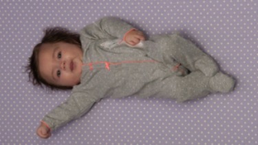 2. Lay your baby face-up on the blanket, with his or her head above the folded corner.