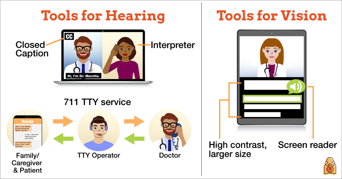 If you have a child who is deaf, hard of hearing or blind (or if you have hearing or vision problems yourself), you may be able to visit with their doctor in the comfort of your home. Your pediatric office may offer telehealth visits by video or phone as an option. There are tools that can make it simpler to join in.