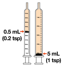 (If the syringe has a cap, throw it away before you use it. The cap could choke your child.)