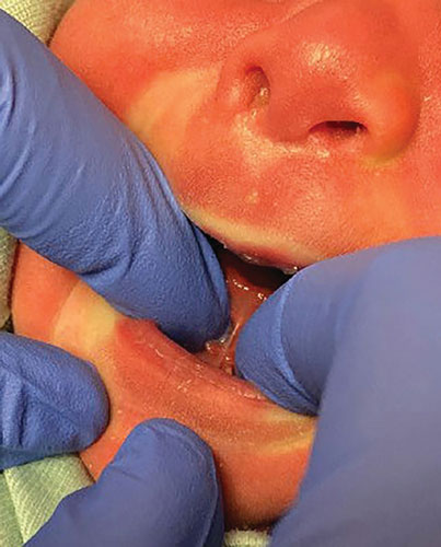 Imagen: En algunos bebés con anquiloglosia, la lengua no sobrepasa las encías. Esto podría afectar a la comodidad y eficacia de la lactancia. |