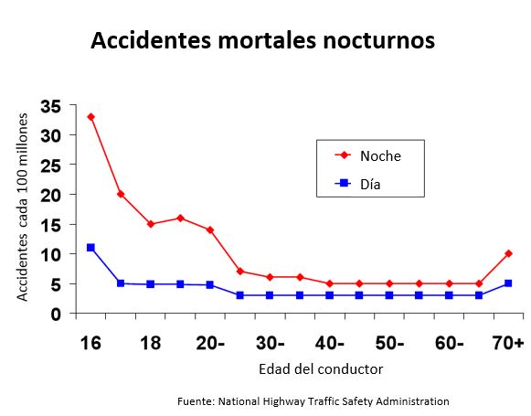 Los accidentes más graves que involucran a adolescentes suceden por la noche. Conducir de noche es más peligroso debido a factores como la visibilidad limitada, la fatiga y los conductores alcoholizados en la carretera.