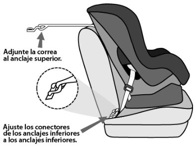 Los asientos de seguridad para el automóvil se pueden instalar con el cinturón de seguridad del vehículo o su sistema LATCH (anclajes inferiores y correas de sujeción para niños). LATCH es un sistema de fijación de los asientos de seguridad para el automóvil. Los anclajes inferiores se pueden utilizar en lugar del cinturón de seguridad para instalar el asiento, y a muchos padres les resultan más fáciles de usar en algunos automóviles. La correa superior mejora la seguridad brindada por el asiento y es importante usarla para todos los asientos orientados hacia adelante, incluso los instalados con el cinturón de seguridad del automóvil. Si bien el cinturón de seguridad y los sistemas LATCH son igual de seguros, los cuidadores podrían preferir un sistema o el otro. Tenga en cuenta que se debe usar solo un sistema salvo que el fabricante del asiento de seguridad para automóviles y el fabricante del vehículo digan que es adecuado usar los 2 sistemas al mismo tiempo.