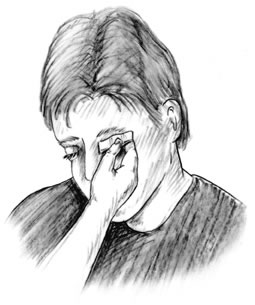 - Si esto no da resultado, estire el párpado superior sobre el inferior. Esta maniobra y las lágrimas ayudarán a desalojar la partícula.