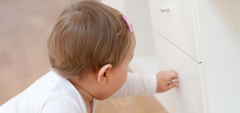 Before or as soon as your child begins crawling or walking, take extra steps to make sure harmful items are out of reach, out of sight, and ideally stored in a cabinet with lock or safety latch. Check each room of your home for these potential hazards: