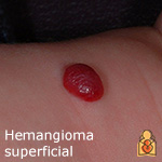 Hemangiomas superficiales, que se llaman "marcas en fresa" porque se parecen a la superficie de esos frutos. Pueden empezar como pequeñas zonas blancas, rosas o rojas en la piel que rápidamente cambian y se convierten en lesiones rojas más brillantes y abultadas. Los hemangiomas superficiales podrían concentrarse en un lugar o extenderse sobre una zona más grande.