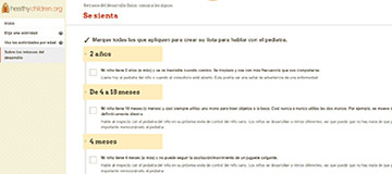 Utilice la herramienta para explorar las habilidades y crear una lista de verificación de las preocupaciones para iniciar una conversación con el pediatra de su hijo.