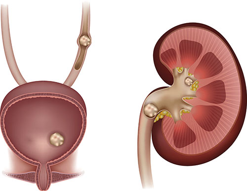 Los cálculos se forman típicamente en el riñón y el uréter, que es el tubo que conecta el riñón con la vejiga. En casos muy poco comunes, se pueden formar en la vejiga.