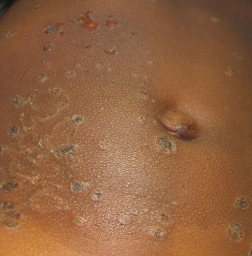 El impétigo puede presentarse en su mayoría en forma de costras o ampollas: