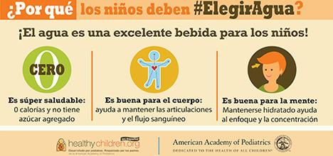 Permanecer activo es una importante elección de estilo de vida para cada miembro de la familia. Pero durante los deportes u otras actividades físicas, su hijo puede necesitar agua adicional para prevenir la deshidratación. Por ejemplo, al practicar deportes, asegúrese de que su hijo beba agua antes, durante y después de las prácticas o los juegos.