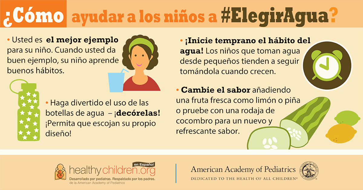 ¡Beber agua no tiene por qué ser aburrido! Hay muchas maneras de persuadir a todos los miembros de la familia a beber saludablemente y mantenerse hidratados durante el día. Ser un buen ejemplo a seguir es una gran manera de ayudar a que el agua forme parte de la rutina de sus hijos y de hacer que se acostumbren a beber agua antes de que tengan sed. A continuación encontrará algunas maneras de agregar un poco de diversión: