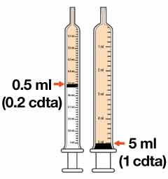 No llene el gotero o la jeringa por completo. Fíjese primero cuanta medicamento debe darle a su niño. Use los números en el gotero o jeringa para llenarlo hasta la línea correcta. O pídale al farmacéutico que marque la línea correcta si usted no está seguro. (Si la jeringa tiene tapa, descarte la tapa para que no se atragante su niño).