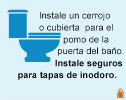 • Install latches on toilets - HealthyChildren.org Baje las tapas de los inodoros. Instale cerrojos o trancas en las tapas de todos los inodoros para evitar que los deditos curiosos las levanten.